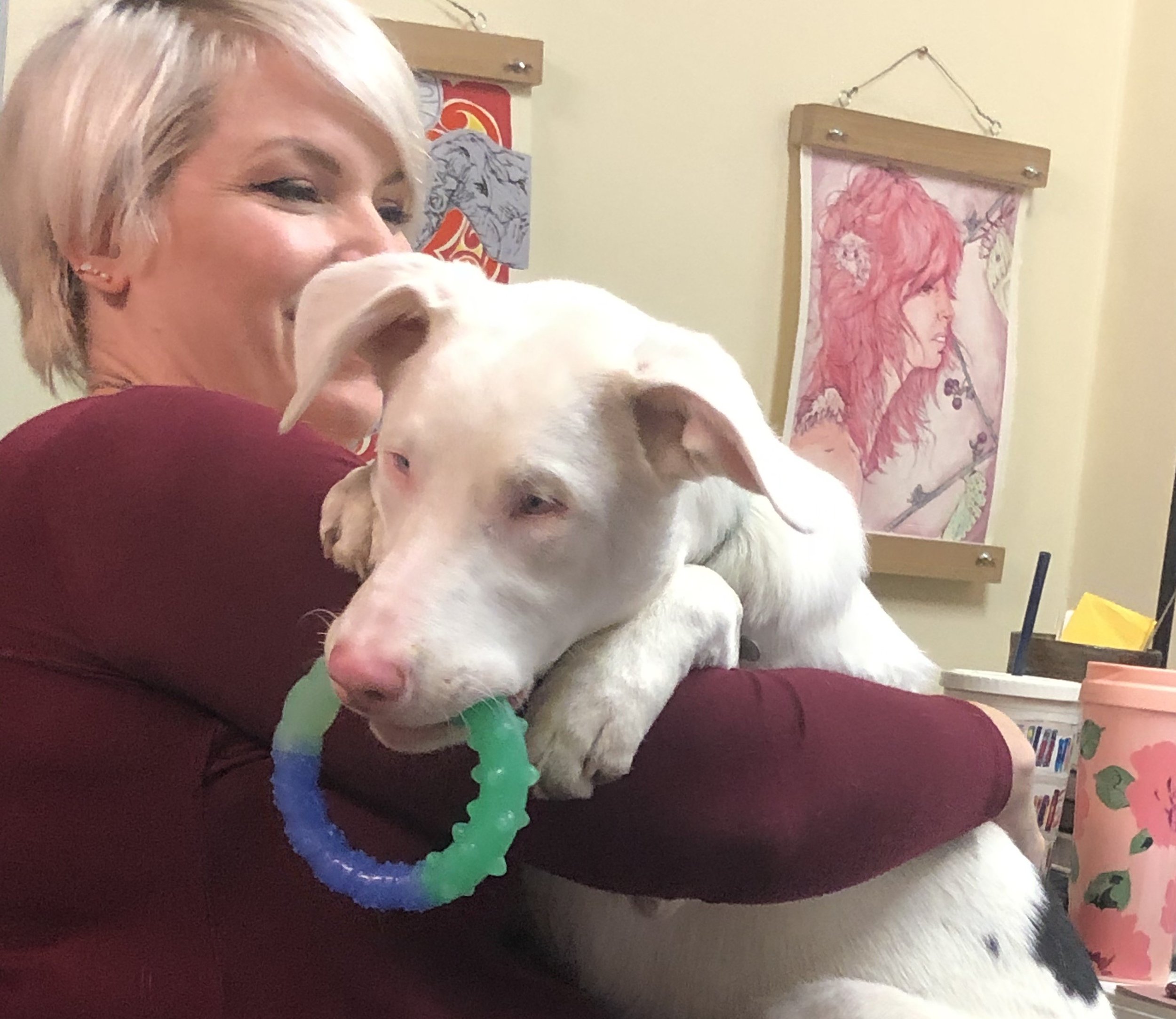 Lil’ Dude Studios is lovingly and passionately run by the incredibly talented artist and dedicated educator Kimberly Barrett. The name is a heartfelt tribute to our very special double merle rescue dog, Zero, who is both visually and hearing impaired, and whom we affectionately call Duder. Lil’ Dude Studios came to life from a heartfelt dream of turning my deep passion for creating art into a truly fulfilling and meaningful career. It’s a bold leap of faith, much like the one we bravely took when we adopted Zero (Duder), a leap I wholeheartedly believe is absolutely worth every risk, challenge, and adventure along the way. Of course, none of this would be remotely possible without my amazing, loving family who constantly embolden and encourage me every step along this exciting journey — my rock; my supportive husband Luke and my four fabulous children: Hayley, Asher, Gwenyth, & Sabrina.